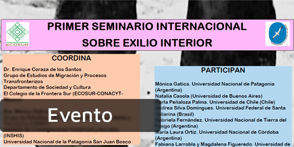 El Colegio de la Frontera Sur (ECOSUR), la Universidad Nacional de la Patagonia San Juan Bosco (UPSJB) y la Universidad Nacional de Tierra del Fuego, Antártida e Islas del Atlántico Sur (UNTDF) invitan al Primer Seminario Internacional sobre Exilio Interior.